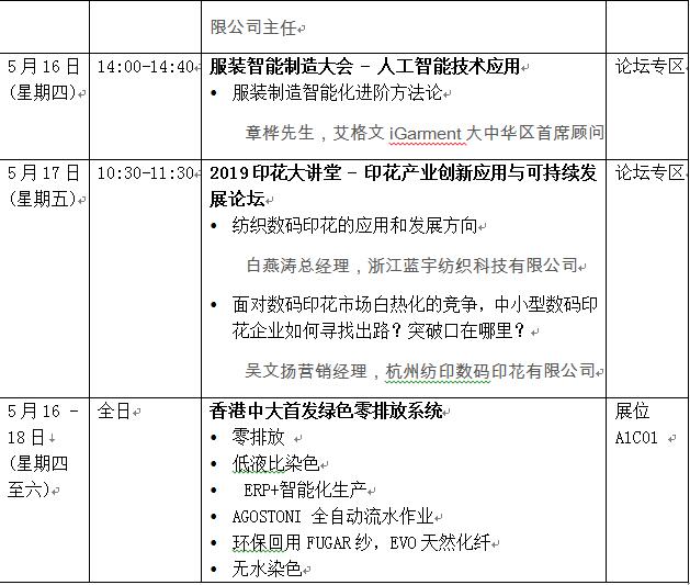 「浙江紡博會2019」同期活動時間表: