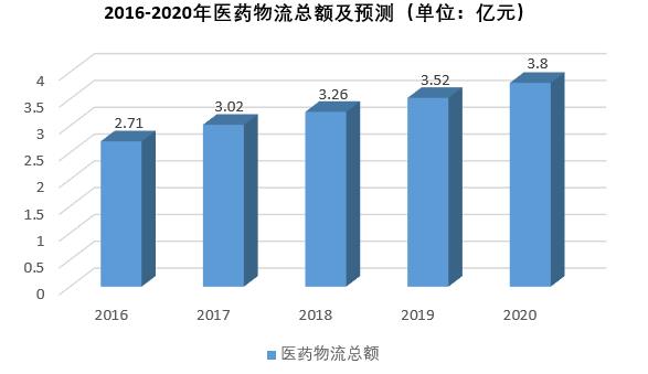 最新的《2017年中國醫藥物流發展報告》顯示,2017年我國醫藥物流總額3.02萬億元,同比增長11.3%。按照每年8%的增長速度計算,預計到2020年,我國醫藥物流總額將達到3.8萬億元。