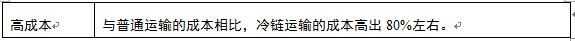 高成本 與普通運輸的成本相比,冷鏈運輸的成本高出80%左右。